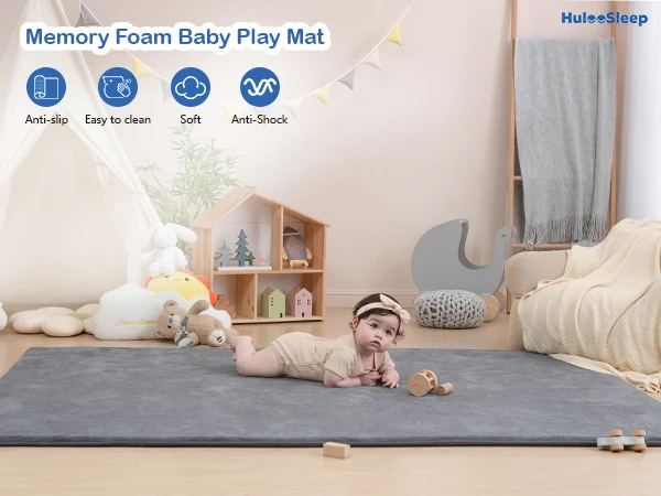Gray Memory Foam Baby Play Mat for Playpen Thick Large Crawling Mat for Floor Soft Velvet Non-Slip for Kids Playroom Mat Rug
